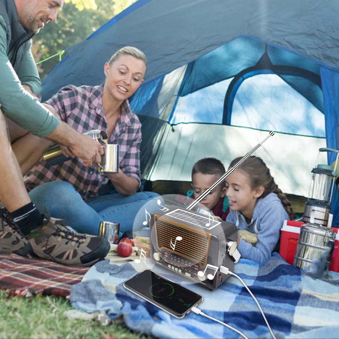 🔋📻Olvídate de pilas y enchufes.Con laRadio Solar Vintage, siempre tendrás música, noticias y compañía, incluso en apagones o al aire libre.Energía inagotable y conexión sin límites.☀️✨