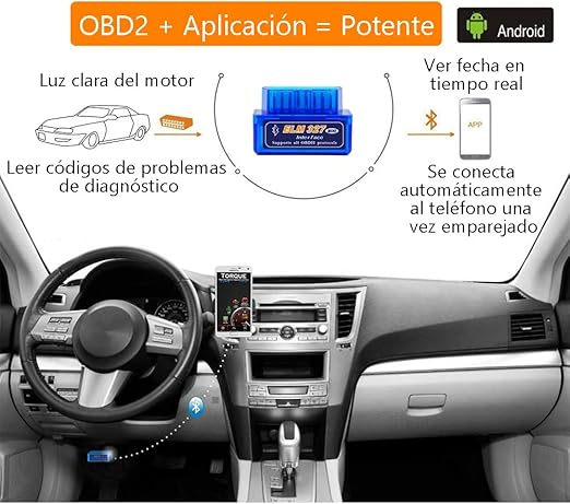 Scanner ELM327 Bluetooth detecta y borra fallas mecánicas desde tu celular, Ideal para autos OBD2 y 100% compatible con Android y apps como Torque.